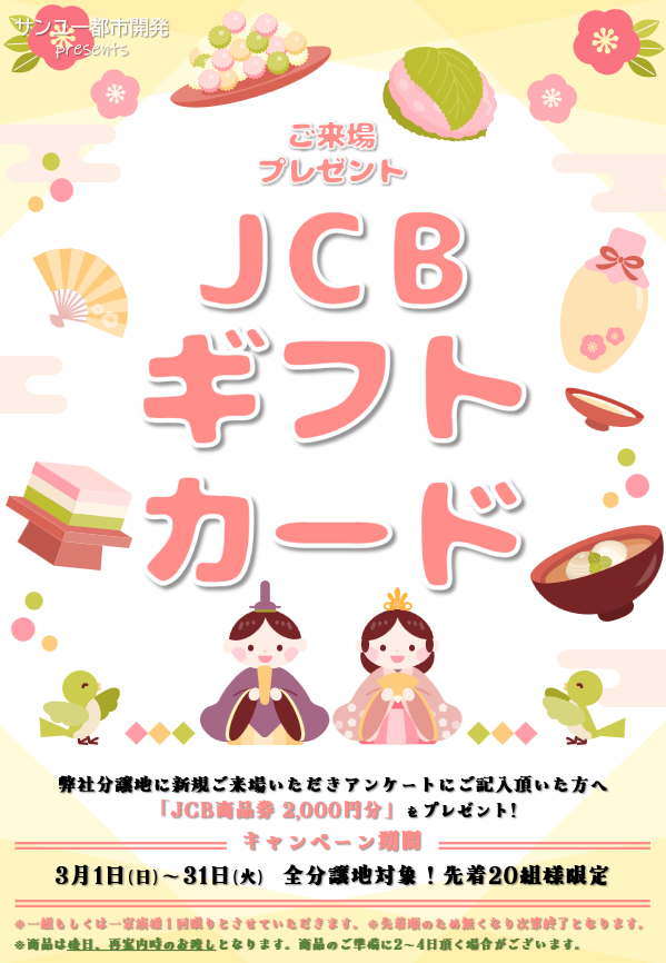 ※ご来場特典は弊社分譲地、またはモデルハウスにキャンペーン期間中に新規ご来場の方が対象となります。